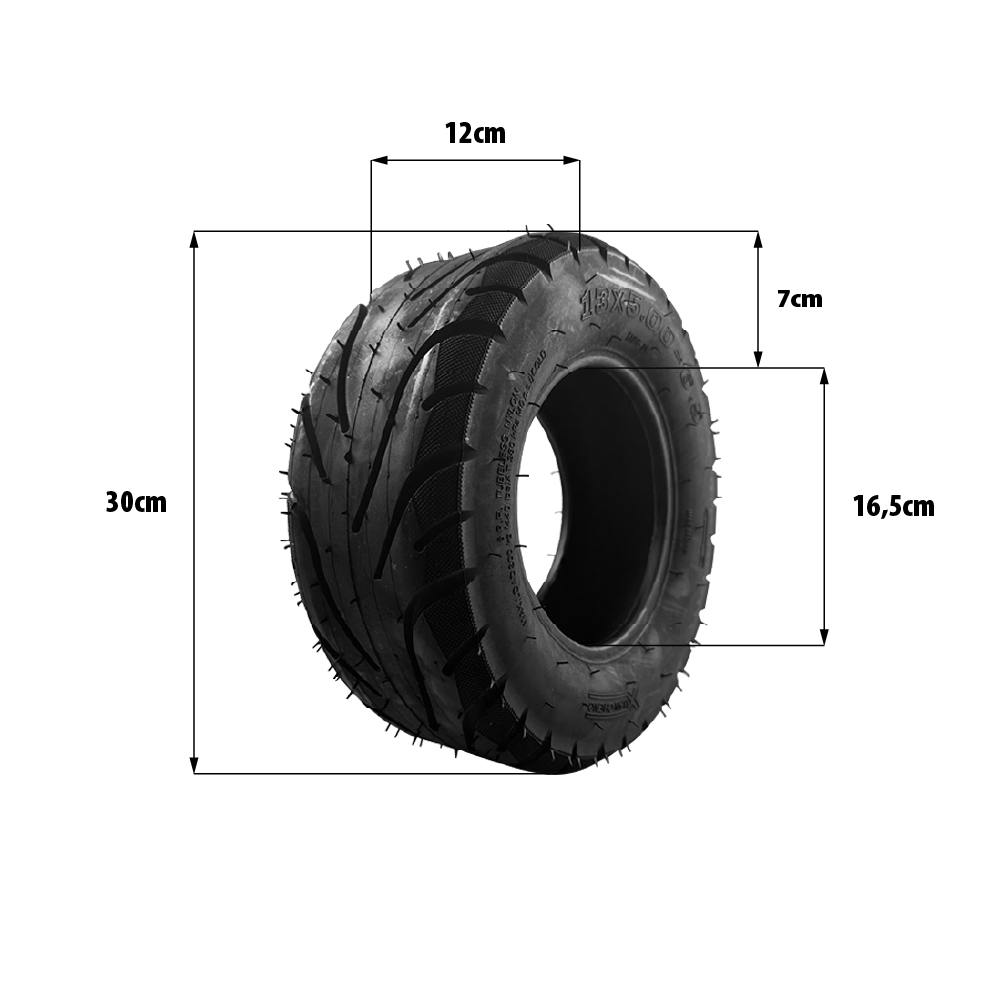 Rejält 13 tum tubeless däck i dimensionen 13×5.0-6.5, utvecklat för kraftfulla elscootrar, ATV och andra större elfordon. Med en bredd på 5 tum och fälgdiameter på 6.5 tum får du ett slitstarkt och stabilt däck med bra väggrepp även i högre hastigheter.