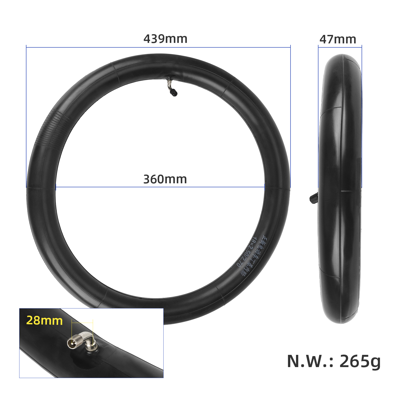 Denna CST innerslang i dimension 18×2.50/2.70 är en slitstark och pålitlig slang för elcyklar, mopeder, scootrar och EUC (enhjulingar). Tack vare den 45° utåtböjda ventilen blir det betydligt enklare att fylla på luft, även i fälgar där en rak ventil är svåråtkomlig.