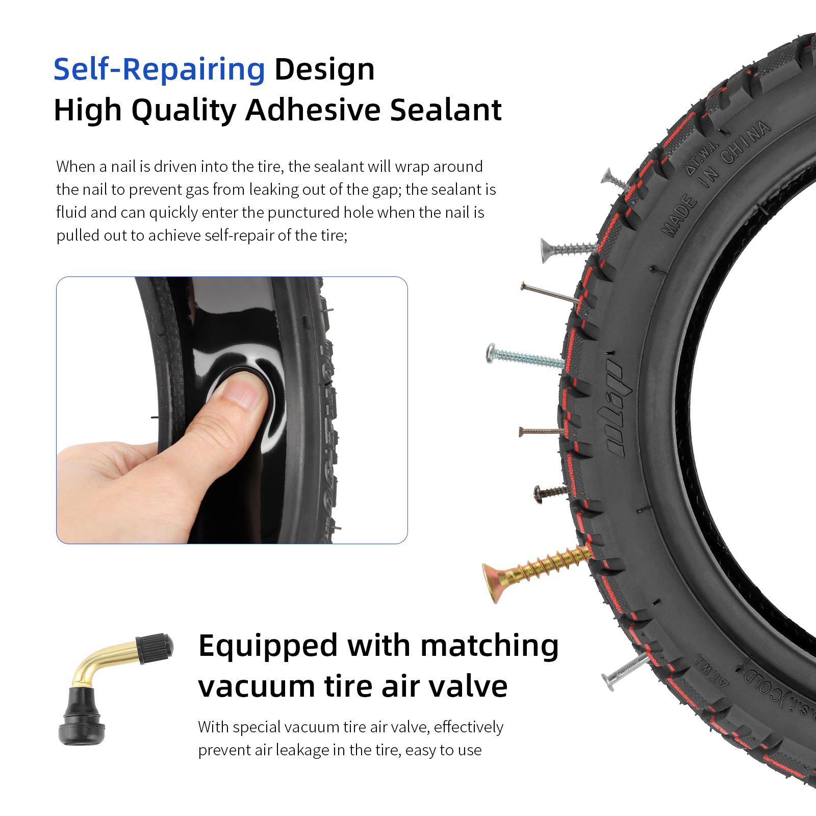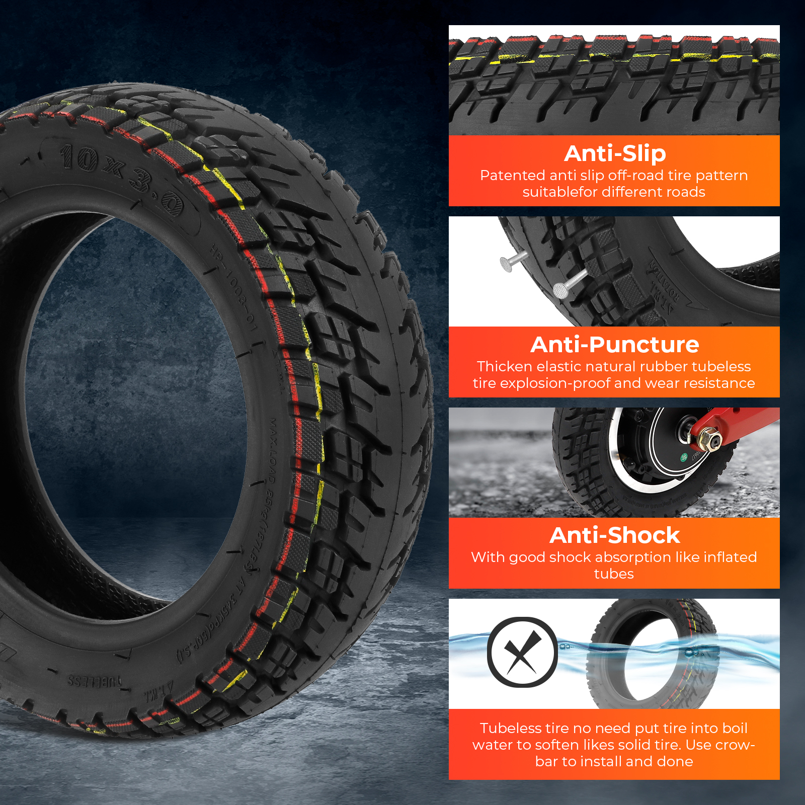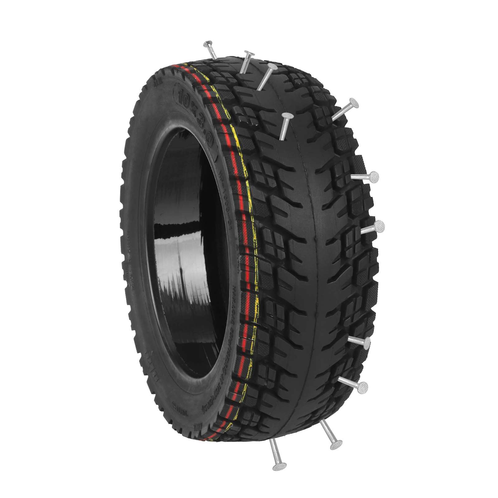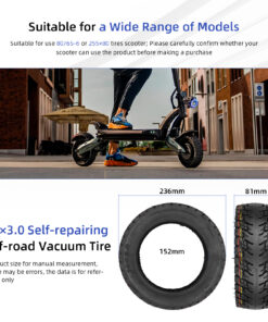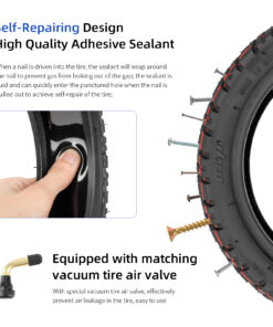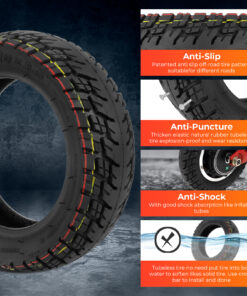 Detta 10×3.0-6 / 255×80 tubeless-däck kombinerar pålitlig hållbarhet med avancerat punkteringsskydd. Fyllt med självläkande silikon, tätar det automatiskt mindre hål och skador – perfekt för dig som vill slippa punktering utan att kompromissa på grepp eller komfort.