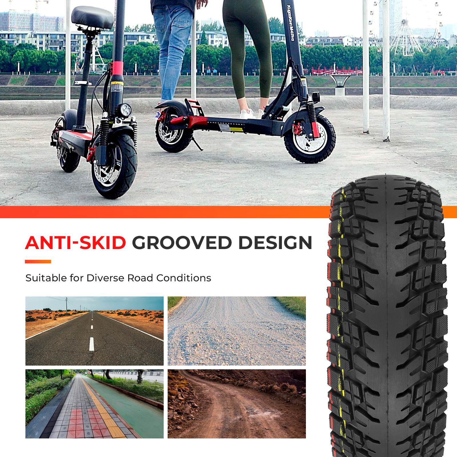 Med sitt allround däckmönster är det utvecklat för nordiskt klimat och ger utmärkt fäste oavsett underlag – asfalt, grus eller regn.